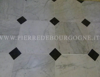 Étage avec octogones en "marbre de Carrare" de cm.30x30 et insèrer en "marbre noir" cm par 7 cm.