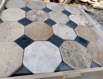 ANTIQUE FRENCH CABOCHONS IN BURGUNDY LIMESTONE AND RECLAIMED BLACK SLATE AGE 17th CENTURY