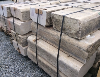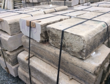Antique reclaimed limestone kerbstones, curbs, curbing, kerbs, featuring beige and warmer colour blends.